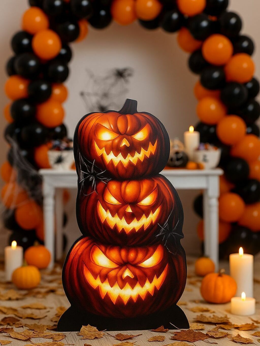 Decoração de Chão Abóbora 65cm – Destaque Sombrio e Divertido!