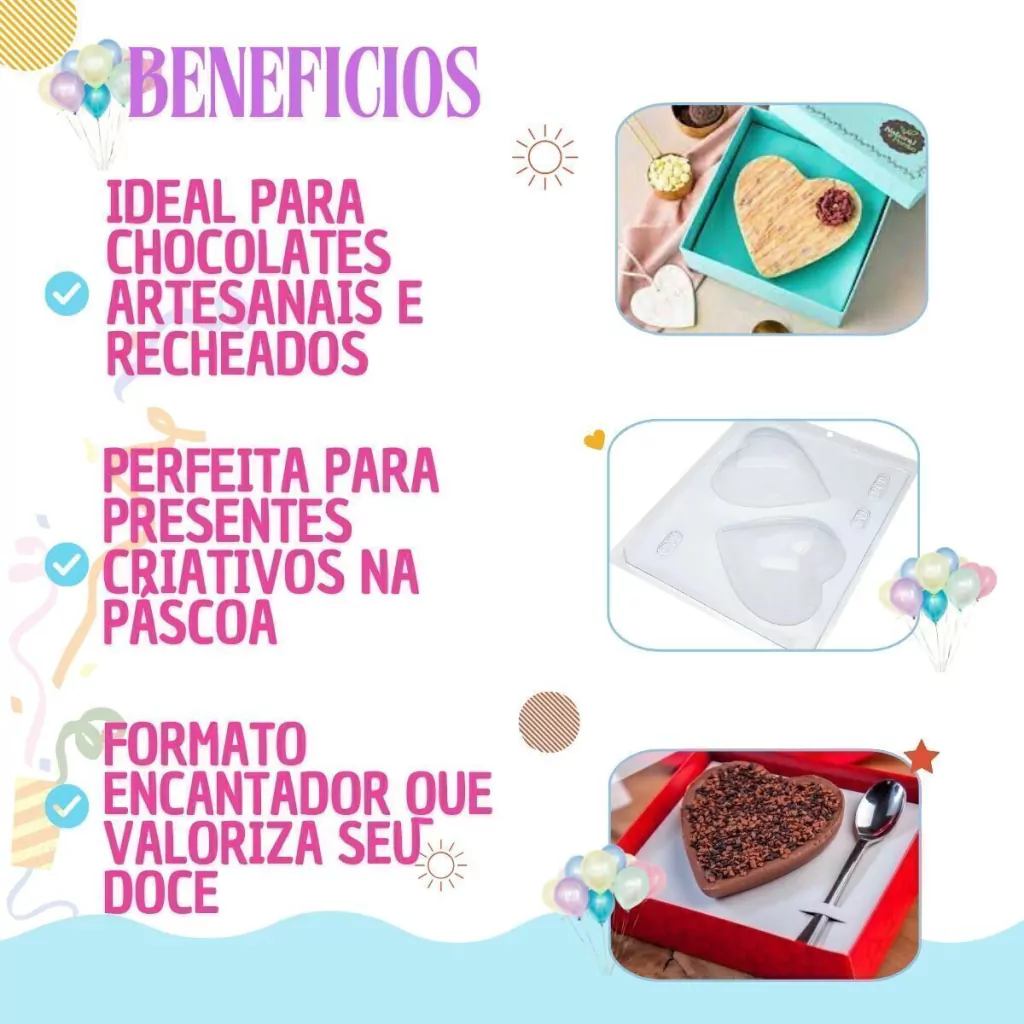 Com a Forma Coração Ovo de Páscoa 200g, você transforma o chocolate em uma verdadeira declaração de afeto nesta Páscoa!